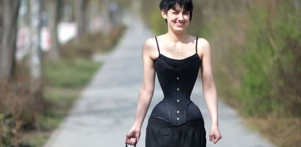 A 26-year-old woman named Michele Kobke has shrunk her waist down from 25 inches to 16 inches by wearing a corset daily for three years. The German woman hopes to whittle her waist down to 14 inches.